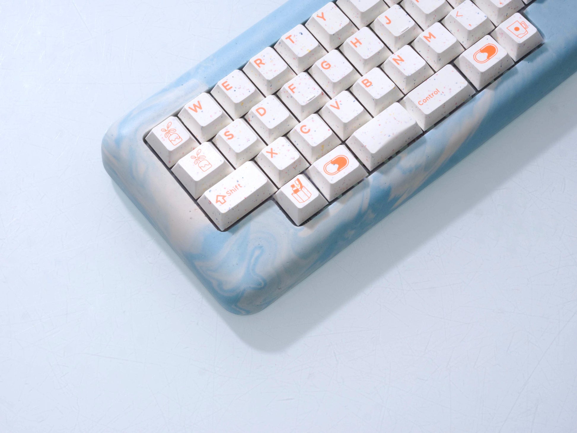 Made from a range of different engineered stone composites, each case is individually hand cast in a custom mold. After demolding the case is polished and sealed. The material feels soft and cool like polished marble, while a cork pad on the bottom provides a beautifully soft typing experience.